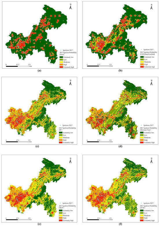 - Cao, Y.X.; Wang, M.; Liu, K. Wildfire Susceptibility Assessment in Southern China: A Comparison of Multiple Methods. Int. J. Disaster Risk Sci. 2017, 8, 164–181. [Google Scholar] [CrossRef]