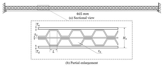 On the premise of ensuring that the thickness of the sandwich structure is less than 20 mm, L is artificially set to 5 mm, which can be obtained by combining Equations (6) and (7):
