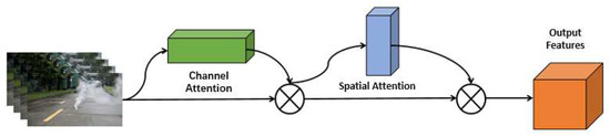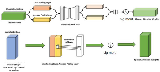 The incorporation of the channel attention mechanism empowers the network to autonomously discern the significance of individual channels, thereby enhancing its ability to extract pivotal information from the feature maps. Through channel attention, the network calculates the importance of each channel, accentuating crucial channels while attenuating less relevant ones. Consequently, the model directs its focus towards the most informative feature channels, thereby enriching the depth of feature representation. Additionally, the integration of the spatial attention mechanism enables the network to concentrate on specific regions within the feature map, facilitating a more nuanced understanding of spatial importance. Spatial attention computes the significance of each pixel position, emphasizing critical pixel positions while mitigating the influence of less substantial ones. This approach aids the model in comprehending the spatial structure and contextual nuances inherent in the image. This is depicted in Figure 4.