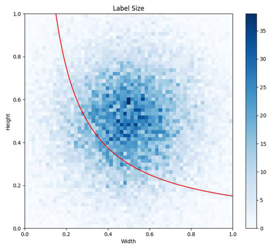 The dataset used in this experiment includes the VSD dataset [9] as well as experimental fire data provided by the Institute of Public Safety Research at Tsinghua University in Hefei. From these datasets, a total of 22,414 smoke images from various environments were selected and named DATA1. To evaluate the efficiency of the algorithm in detecting small smoke targets, all data were uniformly resized, and a two-dimensional histogram was plotted based on the respective Width and Height proportions. The small target dataset for this study selected data where smoke targets occupy less than 15% of the image area, represented by the data below the red line in Figure 7. This dataset is named DATA2 and includes 6781 images, where the red line is defined as .