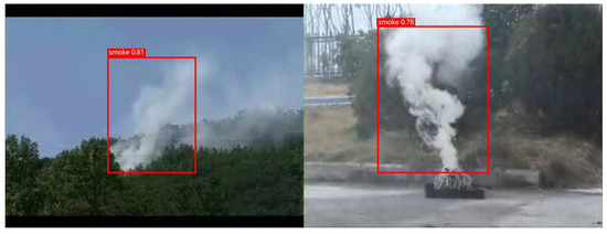 Displaying smoke recognition results based on the YOLOv5 model.