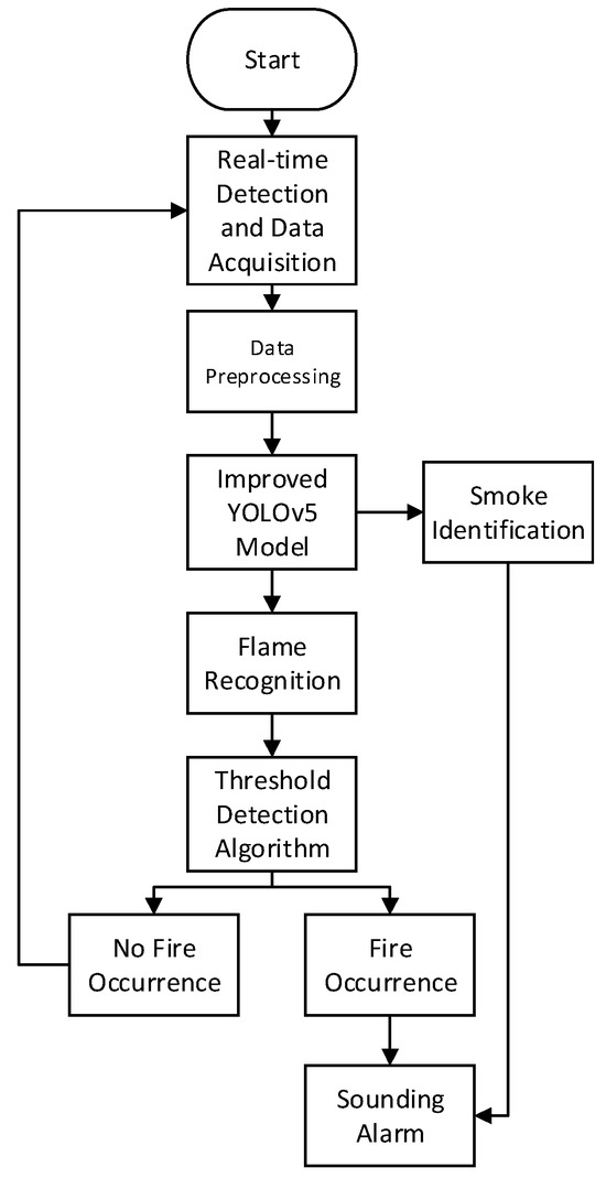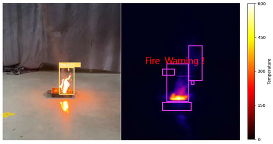 During the software integration phase of the experimental deployment, integrating YOLOv5 with the temperature-based threshold detection algorithm is a crucial step to ensure the collaborative operation of the system. The purpose of this integration is to comprehensively monitor and accurately identify fire scenes by linking various algorithms in series. The detailed description of the entire integration process is shown in Figure 12.
