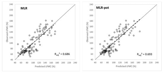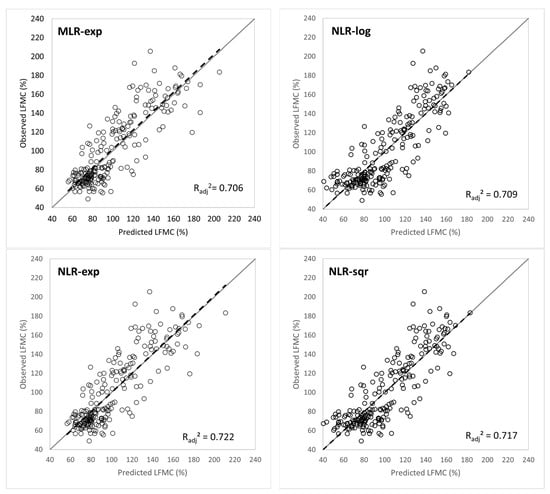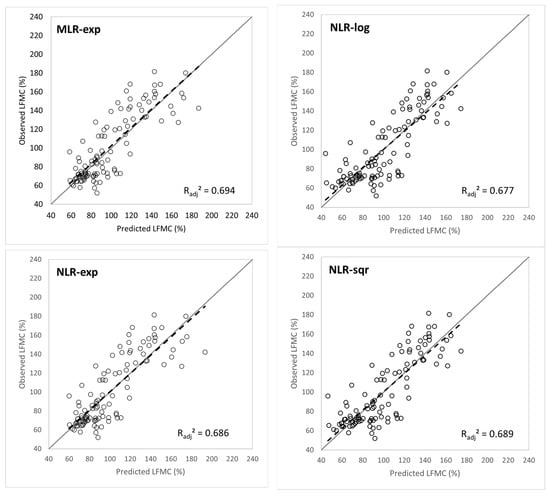 11]. In the present study, despite the good fit between observed and predicted LFMC in all formulations tested (R