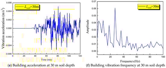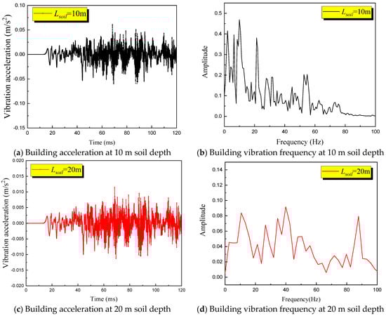 Furthermore, the figure demonstrated that as the soil layer’s burial depth increased, leading to a greater distance between the building gauge and the explosion source, several notable trends emerged. The arrival time of the maximum peak acceleration of the building vibration was delayed, the peak acceleration gradually diminished, and the high-frequency components of the vibration were progressively filtered out.