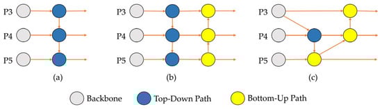 Feature network design—(a) FPN, (b) PANet, and (c) FPN + PANet—YOLOv8 neck.