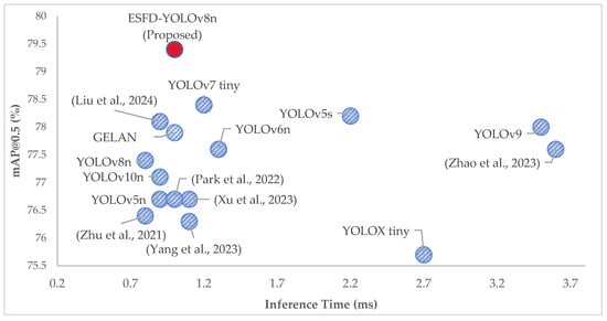 The inference time measures how long the model takes to process an image and generate predictions (Equation (17)). This metric is crucial for real-time applications, directly affecting the responsiveness of the system.