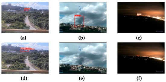Efforts to boost the speed and real-time performance of fire detection algorithms have yielded promising results. Adaptations of YOLOv5 [,,,,] and the MobileNetV2-SSD model [,,] enable real-time fire detection on embedded systems and video surveillance applications, achieving a harmony between speed and accuracy. Furthermore, recent research has focused on developing fire detection systems capable of operating in diverse environments. A previous study [] proposed a hybrid system combining local binary pattern convolutional neural network (LBP-CNN) and YOLOv5 architectures. They reported a fire and smoke detection precision rate of 96.25% for a normal scenario, 93.2% for a foggy environment, and a combined detection average precision rate of 94.59% across varied settings. This approach highlights the importance of using spatial information for accurate detection in diverse environments. The authors of [] incorporated Ghost modules [] and attention mechanisms, resulting in a 27% parameter reduction, a 2.9% increase in mAP50small, and an FPS of 24.4. In addition, incorporating temporal information alongside spatial data has shown promising results. Studies, such as de Venâncio [], reported how combining both aspects helps to reduce false positives without compromising accuracy or processing time, proving advantageous over common approaches. These novel methodologies pave the way for more robust and adaptable fire detection systems.