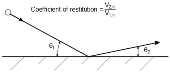 There are many factors that affect the elastic collision process of particles, such as bulkhead material properties, particle incidence angle and velocity, etc. It is shown that the recovery coefficient determining the rebound velocity of particles is a function of the angle of incidence θ1, and the Forder collision model [] was used here. The specific expression is as follows: