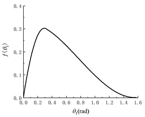 where is the dimension, m3; is a function related to the diameter of the particle, taking a constant of 0.5; is the mass of a single impacting particle, kg; is the velocity of a single particle hitting the wall, m/s; and is the yield strength of the wall material for impacting the wall, MPa. ƒ(θ1) is a function related to the angle of incidence θ1, defined as follows: