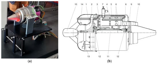 The micro-turbojet engine used for the experiments is of the turbojet type, as shown in Figure 1. More information about its description can be found in [].