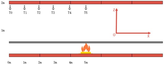 - Zhu, H.; Chi, Q.; Sun, H.; Zhao, X. Study on Temperature Field of Cable Tunnel Fire. In Proceedings of the 2019 9th International Conference on Fire Science and Fire Protection Engineering (ICFSFPE), Chengdu, China, 18–20 October 2019; pp. 1–5. [Google Scholar]
