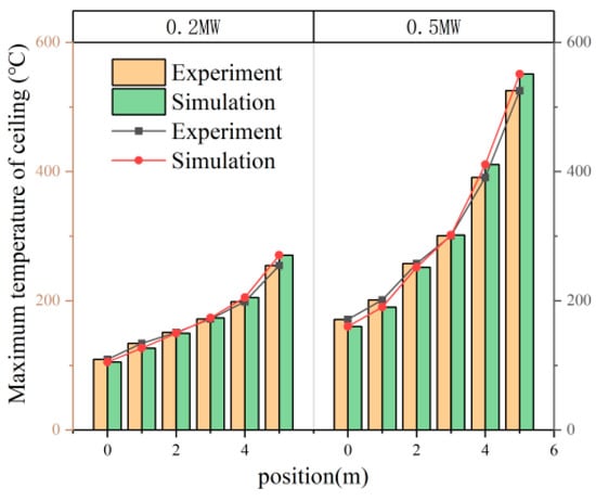- Through experiments and simulations with different fire source powers, it was observed that the maximum temperature of the ceiling directly above the ignition point corresponds to the highest temperature within the cable trench. Within the same location range, the temperature changes more rapidly as it becomes closer to the ignition point.