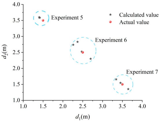 | Example Number | Parameter Values | Predicting Experimental Subjects | d1 Calculation Value/m | d2 Calculation Value/m | d1 Actual Value/m | d2 Actual Value/m | Error ε/m | Accuracy |