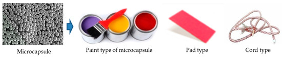 Figure 5 shows various types of applied molded articles using microcapsules. The microcapsule molded body is maintained for a long period of time, has a 90–95% fire-extinguishing function even when stored for several years, and has a high waterproof effect.