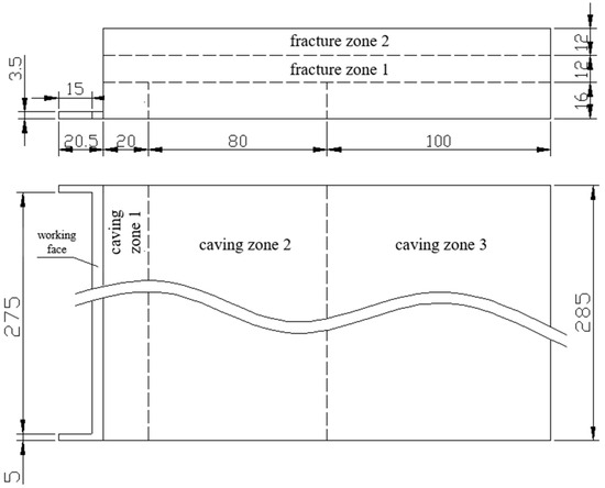 Fully mechanized caving face and goaf geometry size figure.