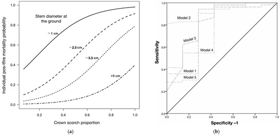 - Woolley, T.; Shaw, D.C.; Ganio, L.M.; Fitzgerald, S. A review of logistic regression models used to predict post-fire tree mortality of western North American conifers. Int. J. Wildland Fire 2012, 21, 1–35. [Google Scholar] [CrossRef]