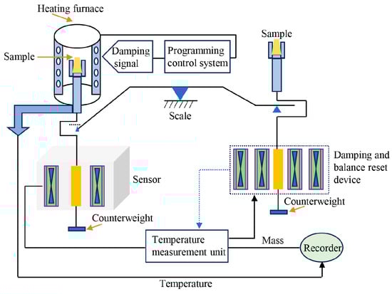 Thermogravimetric analysis (TGA) was conducted to evaluate the pyrolysis characteristics of the soundproof enclosures using an SDT Q600 thermal analyzer(headquartered in New Castle, DE, USA). The schematic diagram of the setup is presented in Figure 1 []. Experiments were carried out under a nitrogen atmosphere with a constant purge gas flow rate of 100 mL/min. The temperature was raised from 300 K to 1200 K at four different heating rates (5, 10, 20, and 40 K/min). Each sample had a mass of approximately 10 mg. Prior to experiments, the samples were equilibrated in the furnace until a stable mass was achieved. To ensure reproducibility, all experiments were performed in triplicate under each condition.
