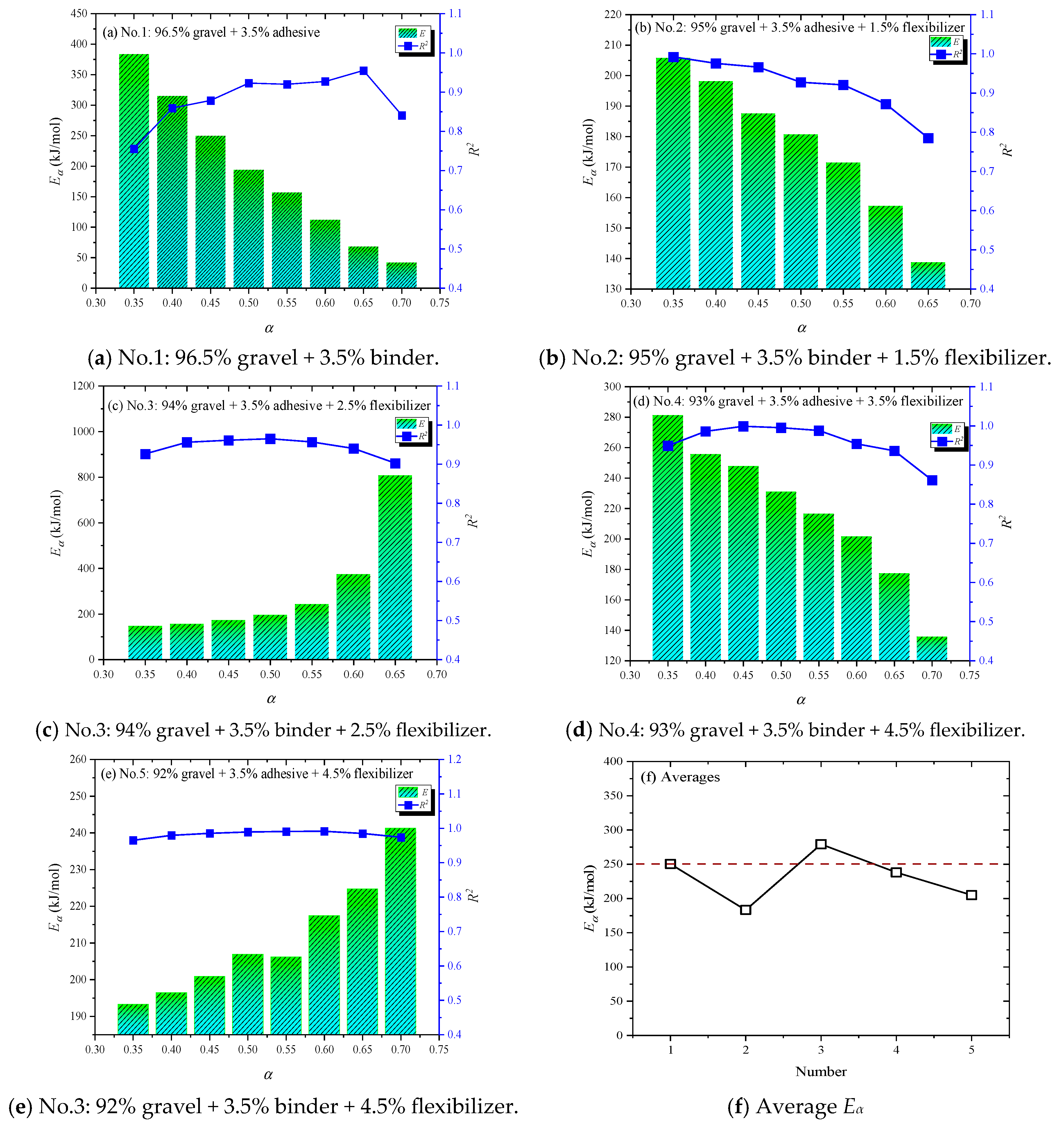 - The overall fire performance scores showed a significant reduction from 0.2801 for unmodified samples to a range of 0.1147–0.2522 for formulations containing the flexibilizer, indicating a reduction in fire hazards. Combustion characteristics and fire risk were influenced by the material composition, allowing flexibility in formulation design based on specific fire safety requirements. Among the tested samples, sample No. 5 (92% gravel + 3.5% binder + 4.5% flexibilizer) exhibited the lowest fire hazards. However, it should be noted that as these materials are intended for use in non-laboratory environments, their long-term performance may be affected by aging. Thus, future studies should consider the effects of aging on material properties.