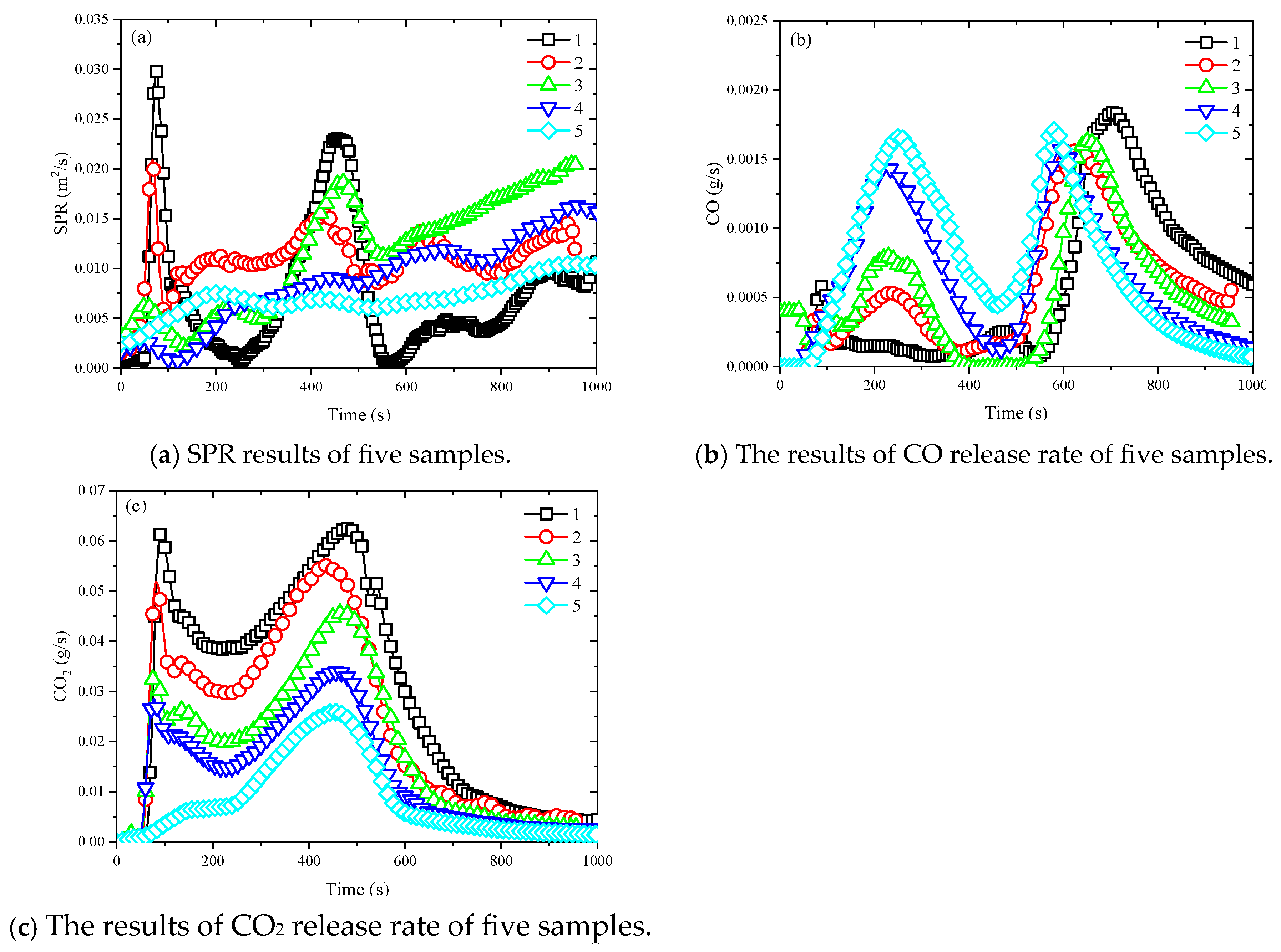 - Li, A.; Huang, B.; Wu, H.; Zhang, W.; Zhou, R.; Ding, Y. Effects of sample thickness on the combustion and smoke characteristics of chlorinated polyvinyl chloride. J. Appl. Polym. Sci. 2022, 139, 51541. [Google Scholar] [CrossRef]
