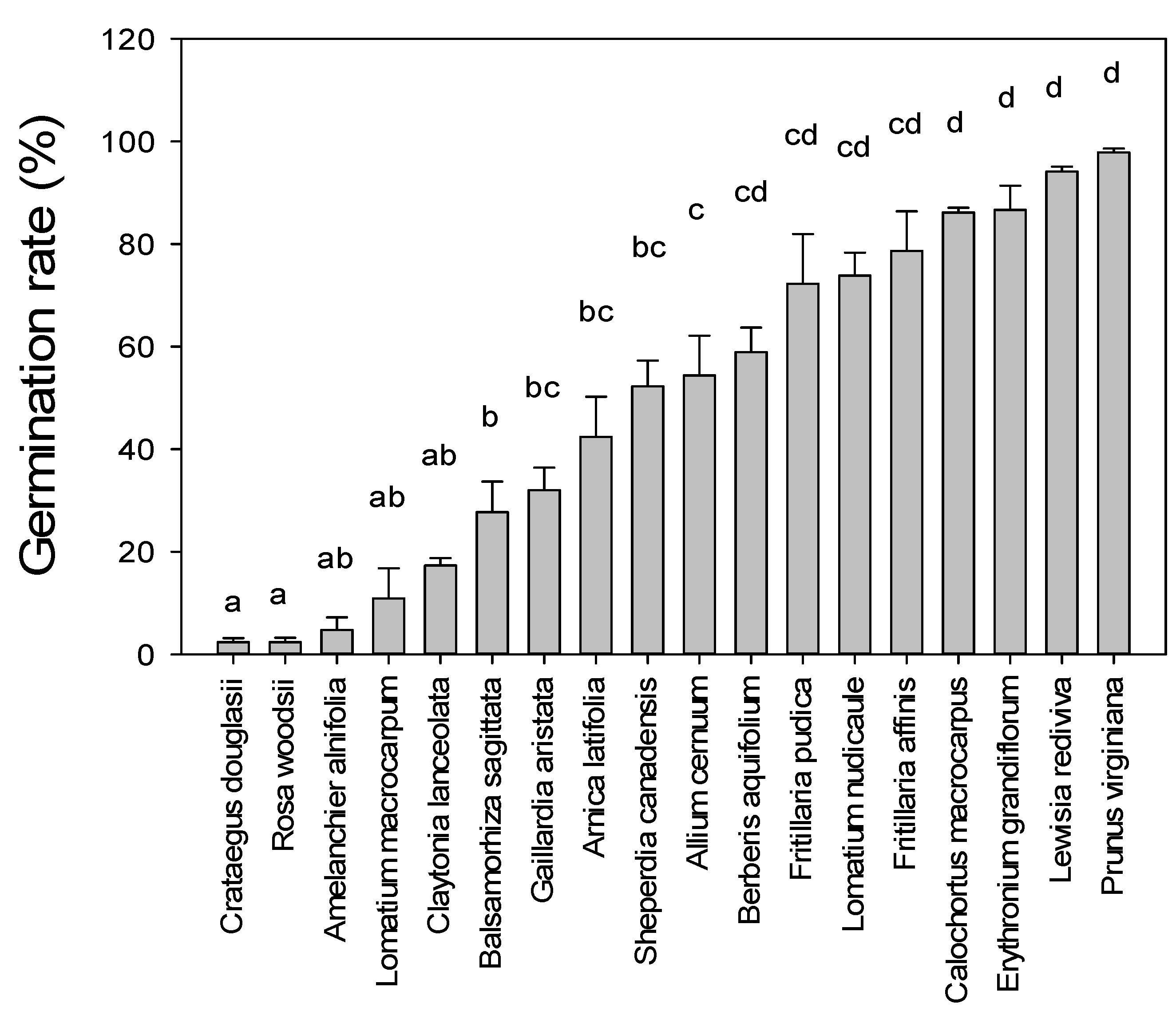 - Love, S.L.; Akins, C.J. Fourth summary of the native seed germination studies of Norman C Deno: Species with names beginning with letters L through O. Nativ. Plants J. 2019, 20, 279–304. [Google Scholar] [CrossRef]
