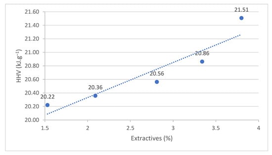 Relationship between HHV and extractives.