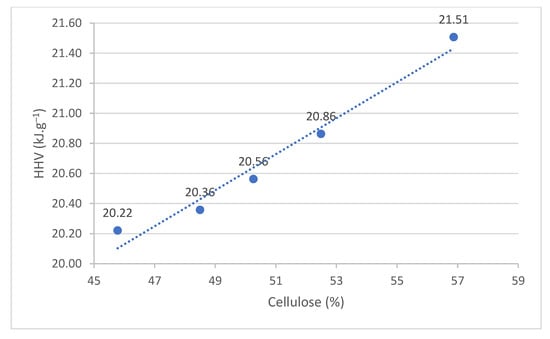 Relationship between HHV and cellulose.