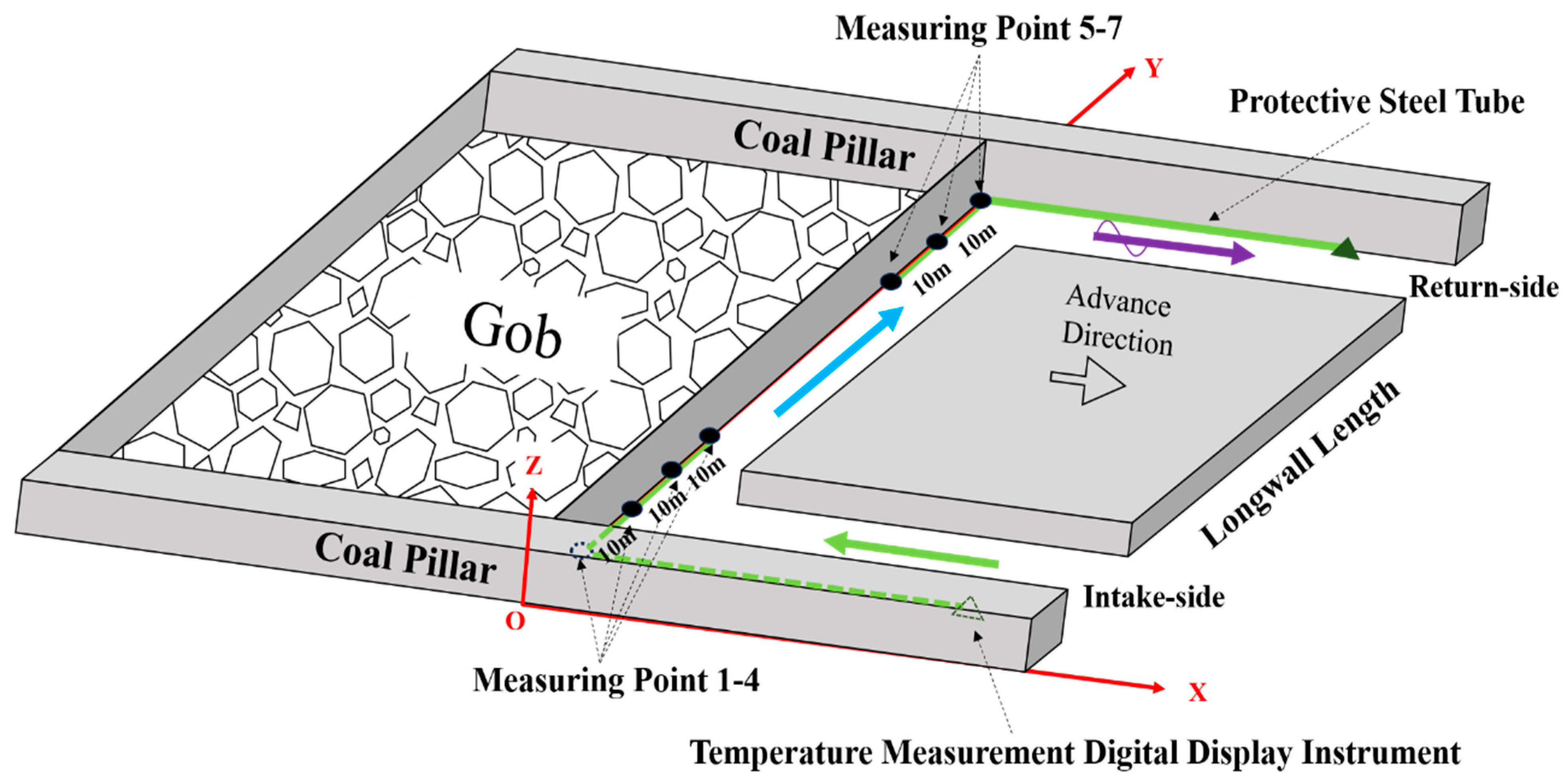 34. Liu, W.; Song, Z.J.; Wang, M.; Wen, P.Y. Dynamic prediction of high-temperature points in longwall gobs under a multi-field coupling framework. Process Saf. Environ. Prot. 2024, 187, 1062–1075. [Google Scholar] [CrossRef]