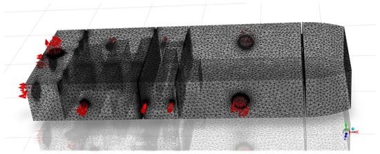 Given the complex hydrogen piping configuration within fuel cell compartments, focusing on a single leakage point is not representative and insufficient for simulating potential daily leakage scenarios. This study selects four representative leakage points based on the layout of fuel cell power generation systems, as shown in Figure 7. Specifically, Points 1 and 2 are located in the left fuel cell compartment, while Points 3 and 4 are in the right compartment, with Points 2 and 4 oriented toward the stern and Points 1 and 3 toward the bow.