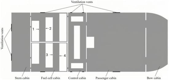 Against this backdrop, major shipping powers are ramping up investments in green ship technology R&D. For instance, Norway has launched the world’s first hydrogen fuel cell ferry, “MF Hydra”, while Hyundai Heavy Industries of South Korea is developing hydrogen-powered ultra-large container ships scheduled for operation by 2025 [3]. In the field of fuel cell vessels, passenger ship safety remains a top concern for shipowners and passengers alike. Ensuring the safety of hydrogen fuel cell ships is critical to their market viability and widespread adoption, making hydrogen fuel cell technology applications a vital research focus [4]. Therefore, conducting numerical simulation studies on hydrogen leakage and diffusion within ship compartments is imperative [5].