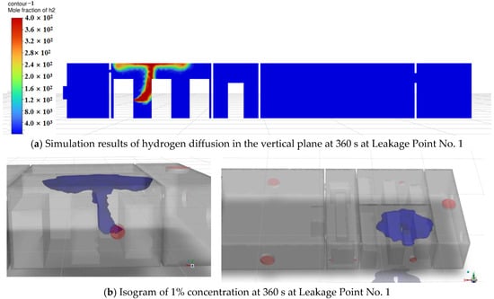 Simulation results of hydrogen diffusion at 360 s at Leakage Point No. 1.