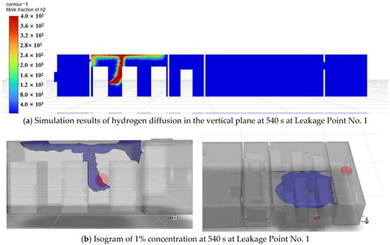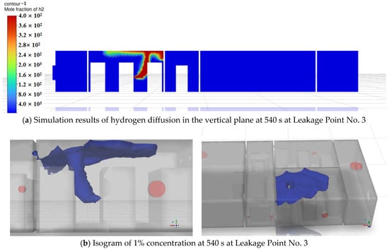 Simulation results of hydrogen diffusion at 540 s at Leakage Point No. 1.