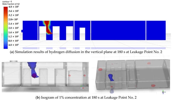 Simulation results of hydrogen diffusion at 180 s at Leakage Point No. 2.