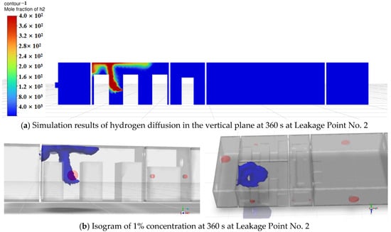 Simulation results of hydrogen diffusion at 360 s at Leakage Point No. 2.