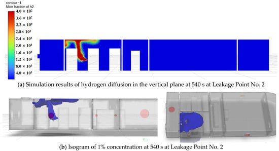 Simulation results of hydrogen diffusion at 540 s at Leakage Point No. 2.