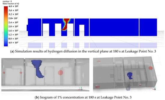 Simulation results of hydrogen diffusion at 180 s at Leakage Point No. 1.