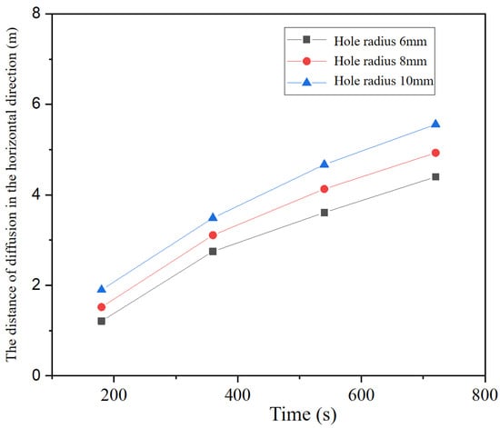 To further validate the reliability of the numerical simulation results, a time step independence study was conducted. Comparative cases with different time steps (Δt = 0.1 s, 0.5 s, and 1.0 s) were established. The volume of the 1% concentration isosurface at 540 s and the velocity distribution near the leak source were specifically monitored. The results indicate that for a time step of Δt = 0.5 s, the calculated isosurface volume differed by only 1.2% compared to the benchmark result (Δt = 0.1 s), with a velocity error of 0.9% near the leak point, demonstrating good agreement. However, when the time step was increased to Δt = 1.0 s, the volume error rose to 4.5%, indicating a significant increase in numerical discrepancy. Therefore, to balance computational accuracy and efficiency, a time step of Δt = 0.5 s was selected for all subsequent simulations in this study.