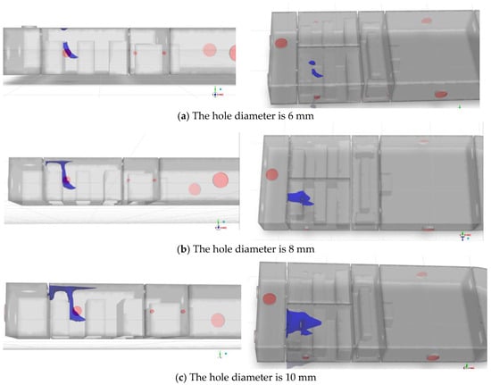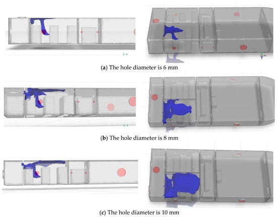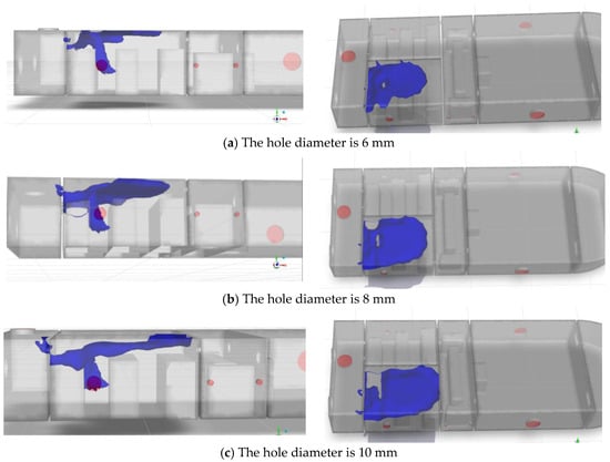 In addition, at 540 s, the simulation results when the concentration isosurfaces are 2% to 4%, respectively, are shown in Figure 15.