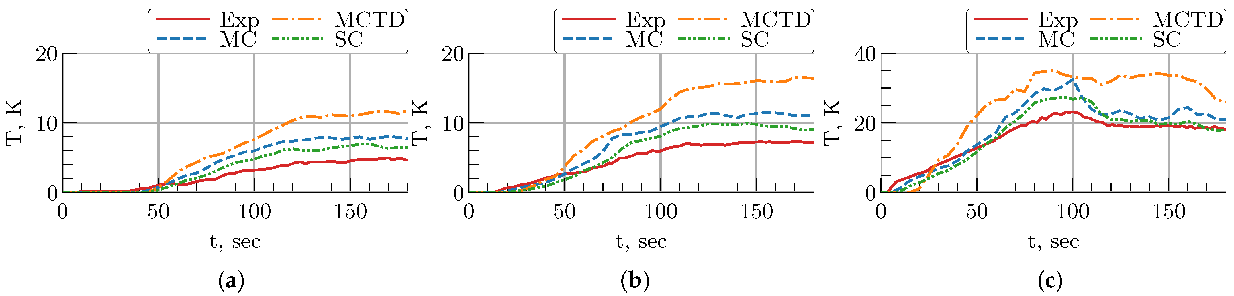 The best agreement with the experiment was achieved in the SC and MC cases. In the SC case for TC3 and TC13 (