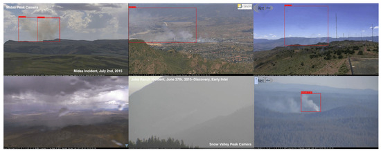 To further support transparency and reproducibility, Figure 5 showcases representative samples from the dataset. These examples illustrate the diversity of smoke appearances, environmental contexts, and annotation styles included in our study. Additionally, the HPWREN Fire Ignition Images Library is publicly accessible [56], and the Nemo training and test datasets are available through the authors’ GitHub repository [58].