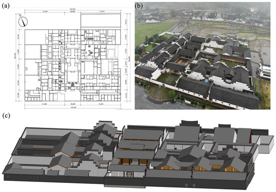 (a) General plan; (b) bird’s-eye view; (c) model of Zhoujia compound.