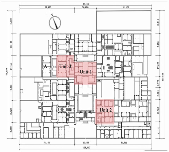 Location of units 1, 2, and 3 in the general plan.