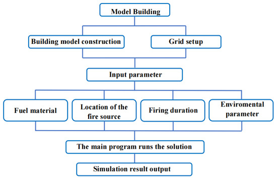 The simulation research and analysis of PyroSim fire simulation software can be divided into the following four steps (Figure 7).