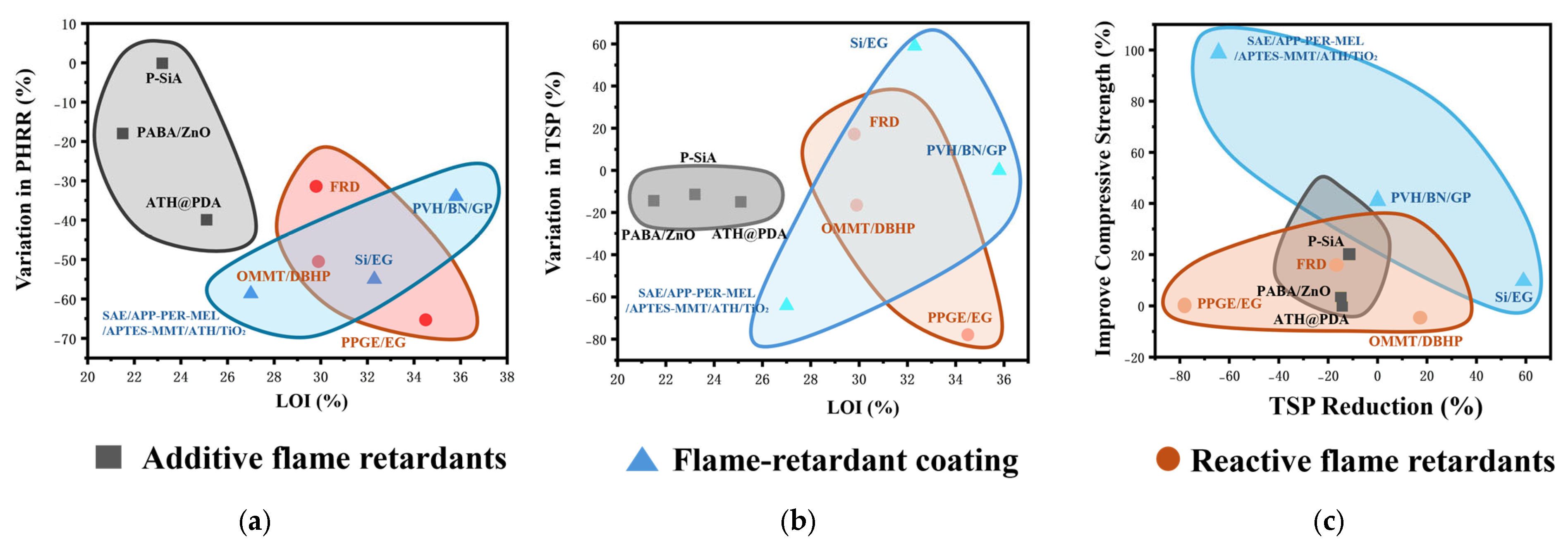 - Zhang, W.; Tong, M.; Xing, F.; Zheng, H.; Zhu, C. Enhanced flame-retardant performance of rigid polyurethane foam by using aptes--mmt and ath mixed intumescent coatings. J. Appl. Polym. Sci. 2024, 141, e54836. [Google Scholar] [CrossRef]