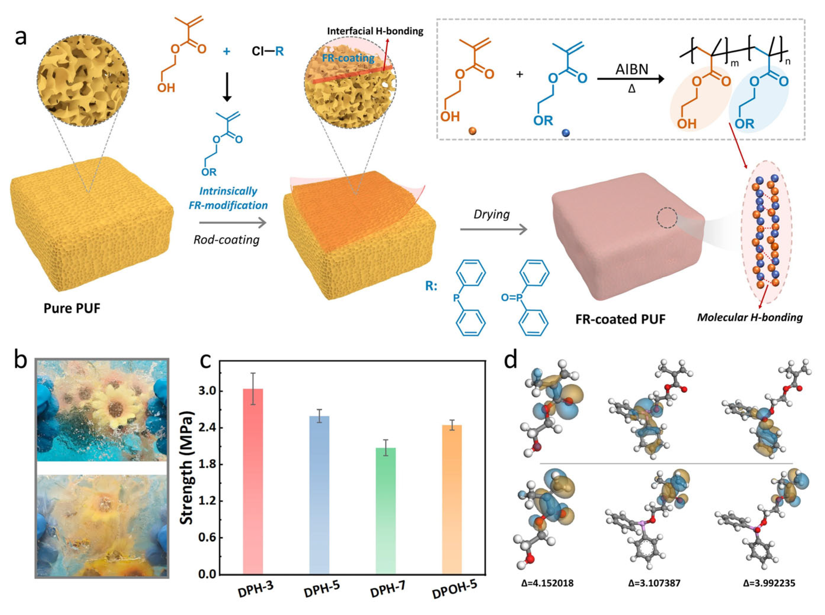 - Bu, F.-Y.; Fu, Z.-C.; Dong, Q.-X.; Wang, T.; An, W.-L.; Deng, J.-N.; Deng, C.; Yan, Y.-W.; Chen, M.-J. Flame-Retardant and Mechanical Strong Polyurethane Foam Enabled by Hydrogen-Bonded Phosphonate Networks. ACS Appl. Polym. Mater. 2025, 7, 8186–8198. [Google Scholar] [CrossRef]
