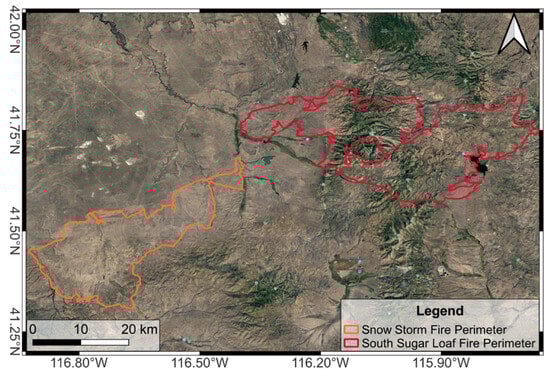 Wildfires in the Western United States increasingly impact sagebrush ecosystems due to an interplay of climate change and the proliferation of invasive annual grasses, notably cheatgrass (Bromus tectorum), which alter disturbance regimes and increase fuel loads [1,2,3]. These altered fire regimes disrupt native plant communities, heighten soil erosion, reduce vegetation cover, and degrade essential ecosystem structures, leading to diminished biodiversity and compromised ecological services [4,5,6]. The recurrent fire–invasion feedback loop further exacerbates habitat loss and fragmentation, intensifying challenges for sagebrush-dependent wildlife [7]. Consequently, there is an urgent need to assess post-fire landscape changes to inform adaptive management, restore degraded areas, and combat the invasive species cycle, all critical for sustaining ecosystem resilience in the face of ongoing climatic and anthropogenic pressures [8,9,10].