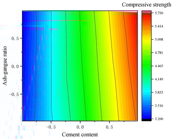 Interaction between gray–gangue ratio and the compressive strength of cement content.