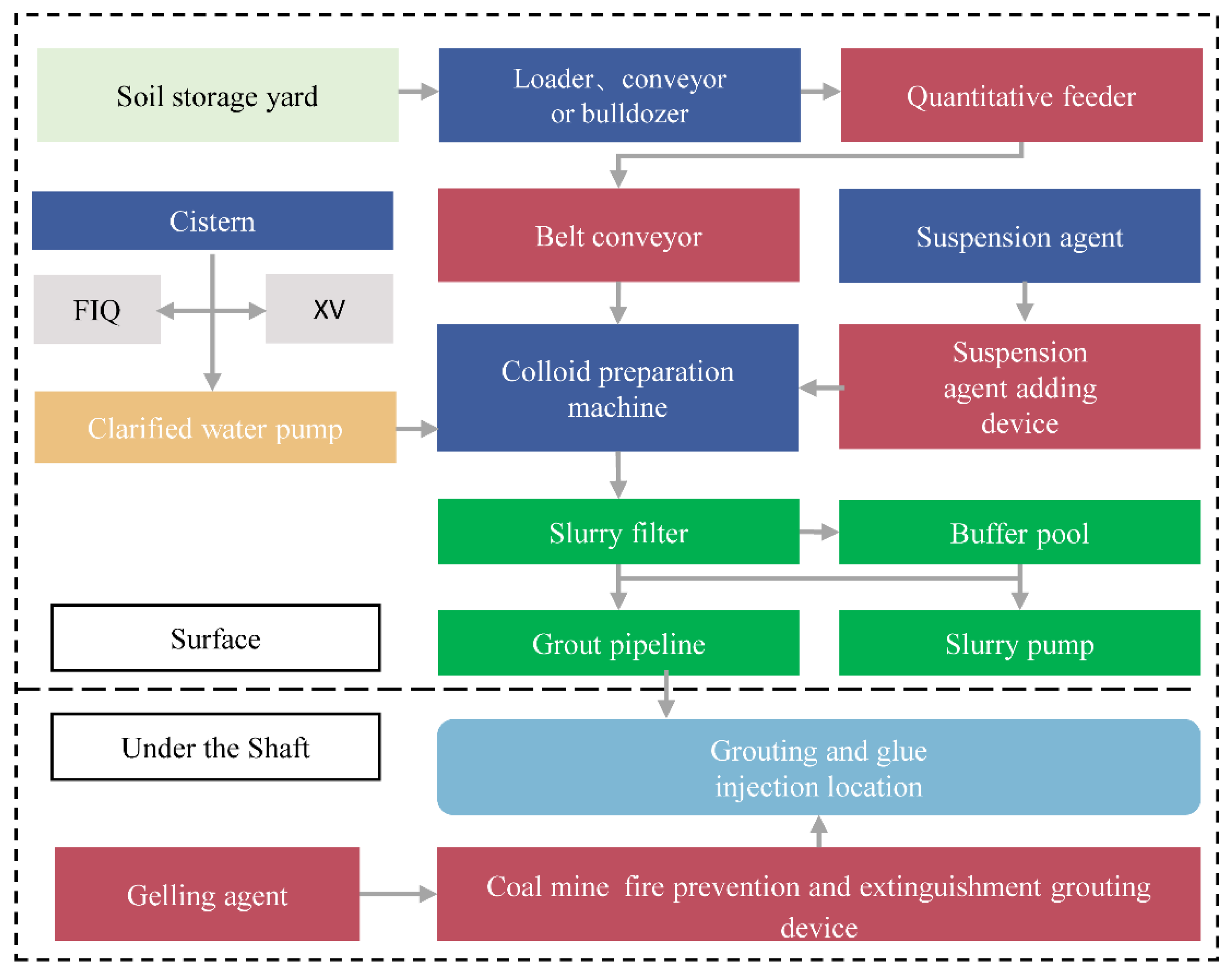 When mixing the grouting and fire protecting and filling material, the following principles should be followed: “The compressive strength of the filling body and the conveying process should meet the requirements, the filling quality should reach a certain index, and the filling cost should be minimized [