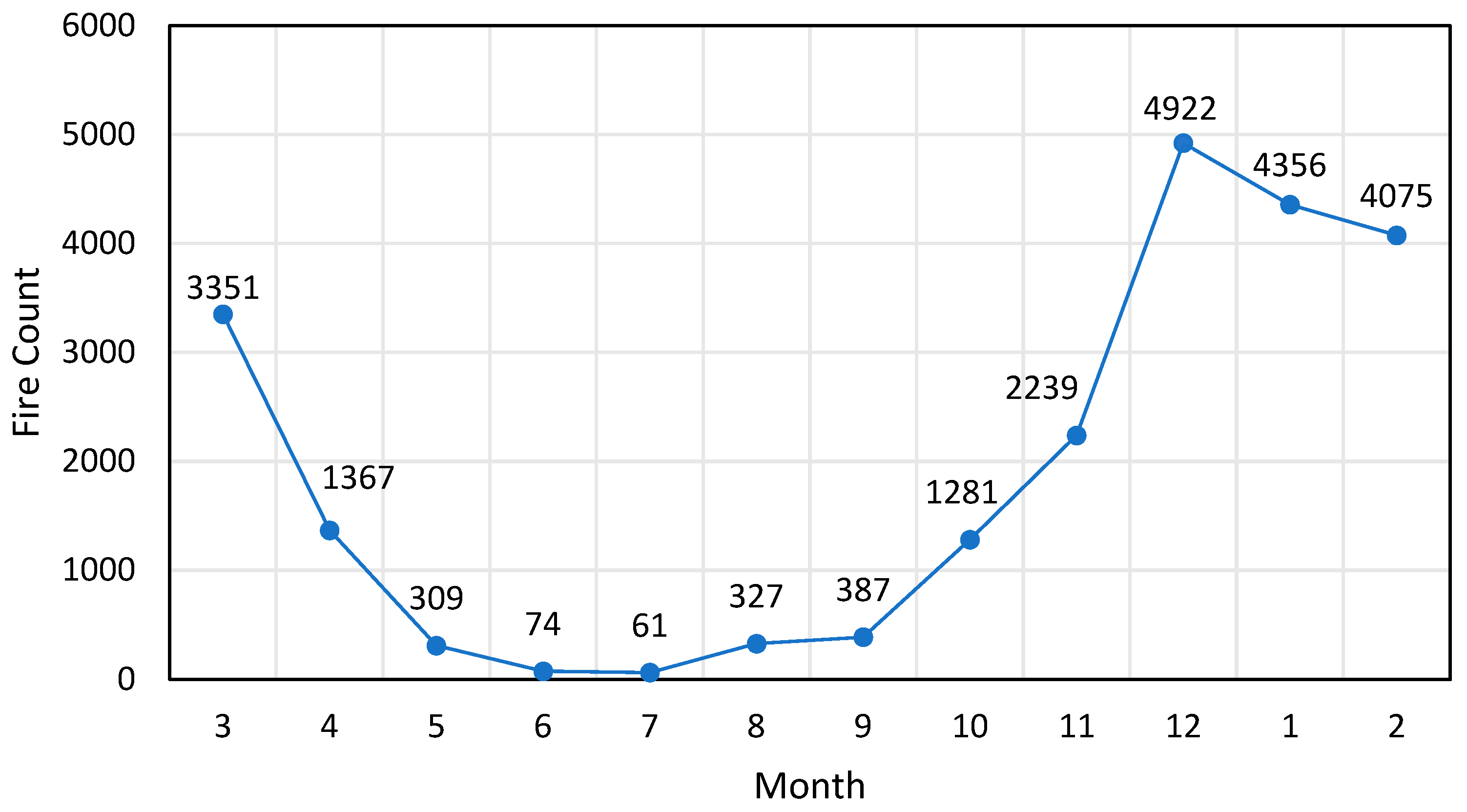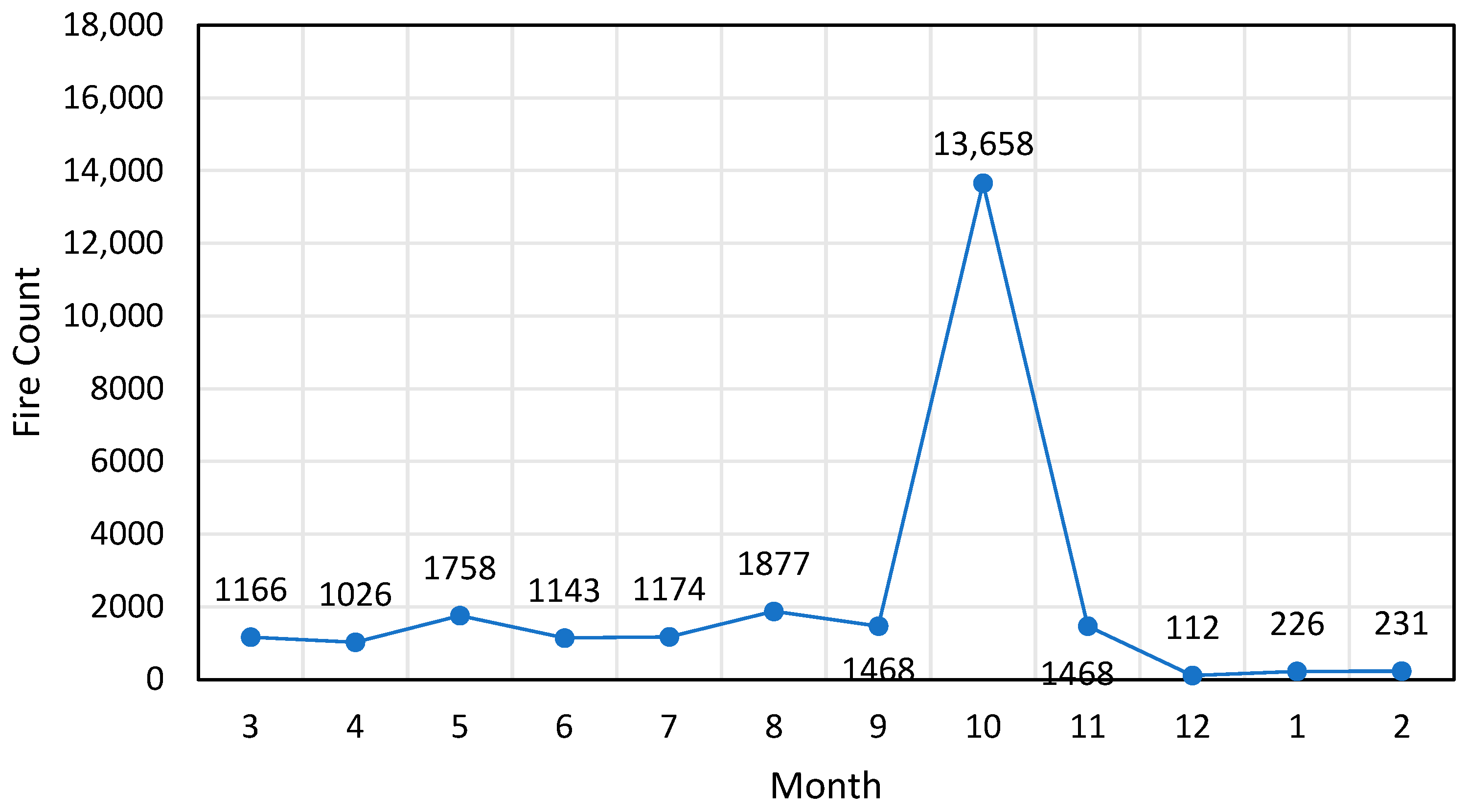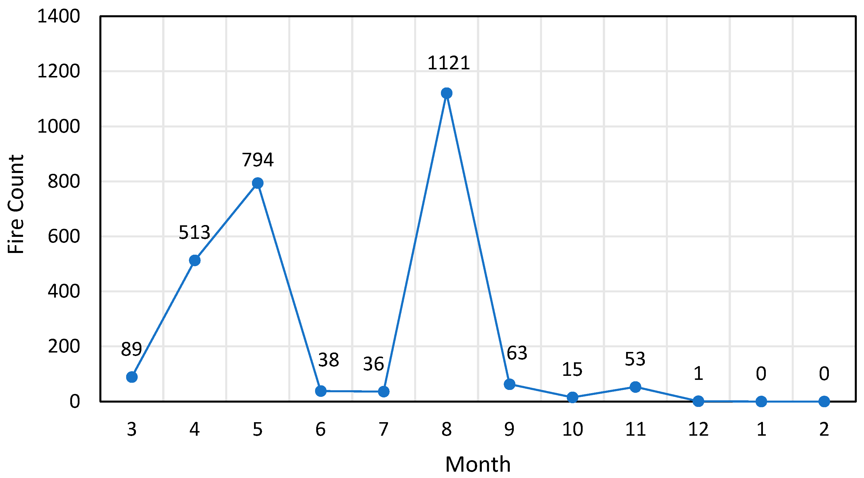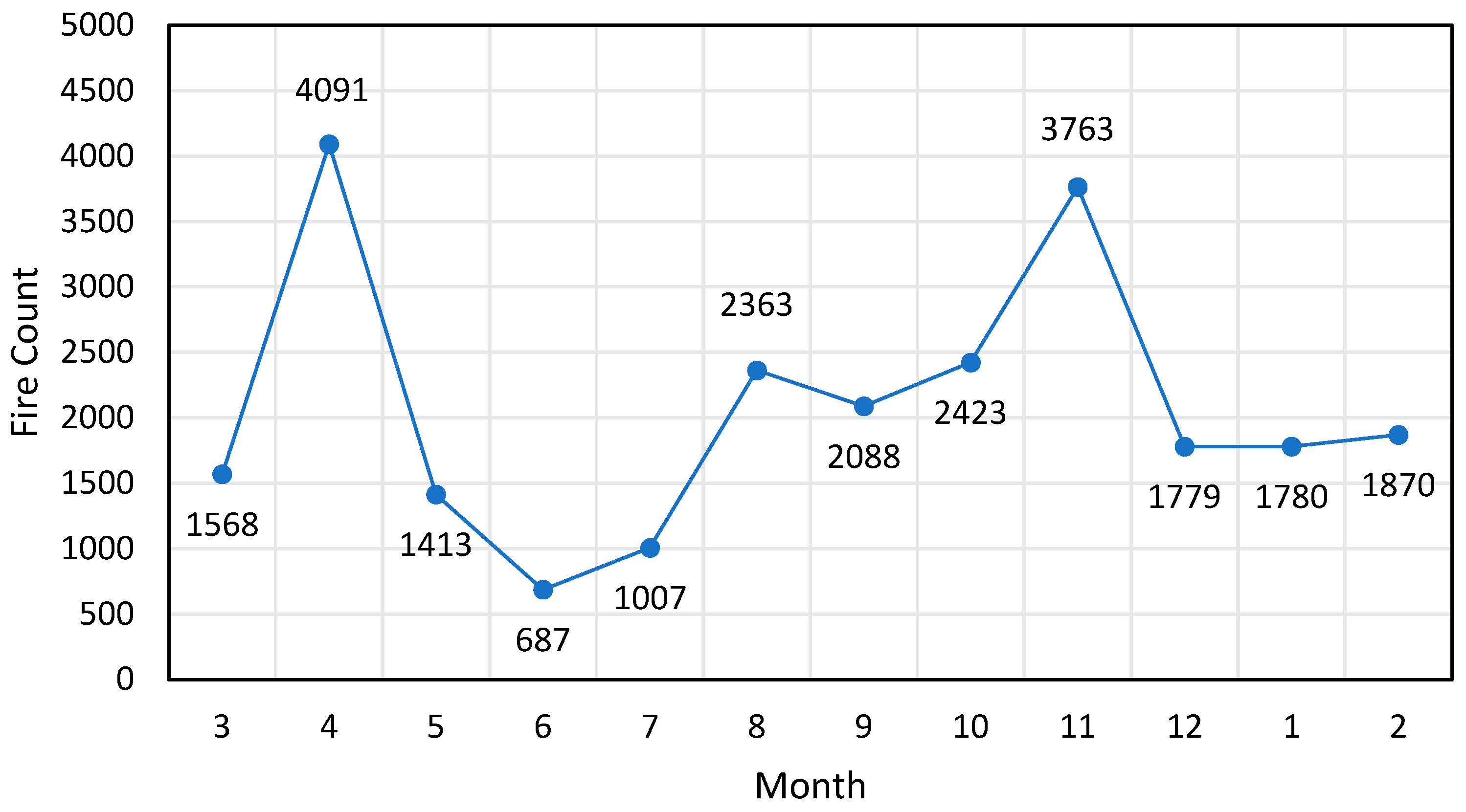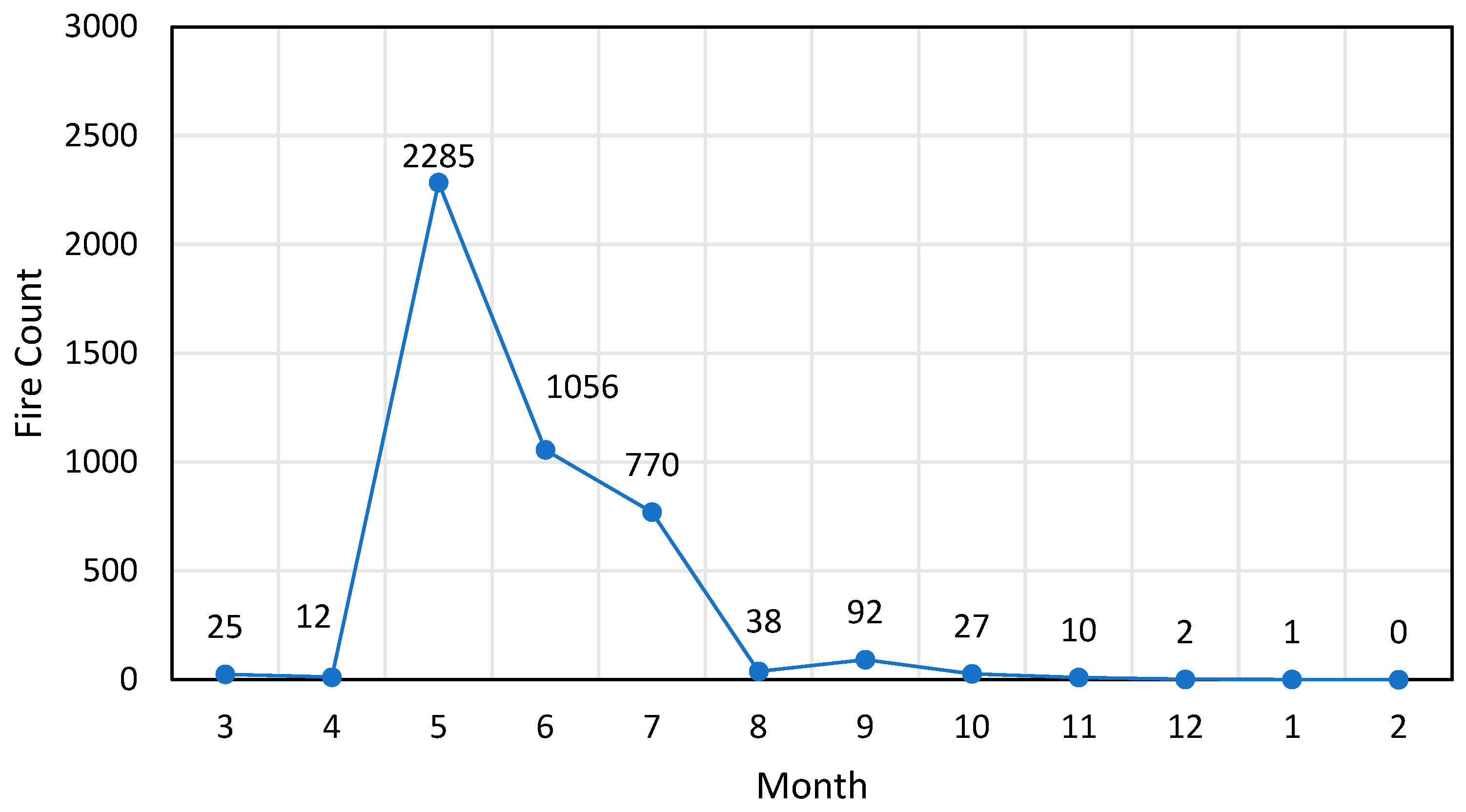 Figure 10. Monthly fire spot statistics map for area 2.