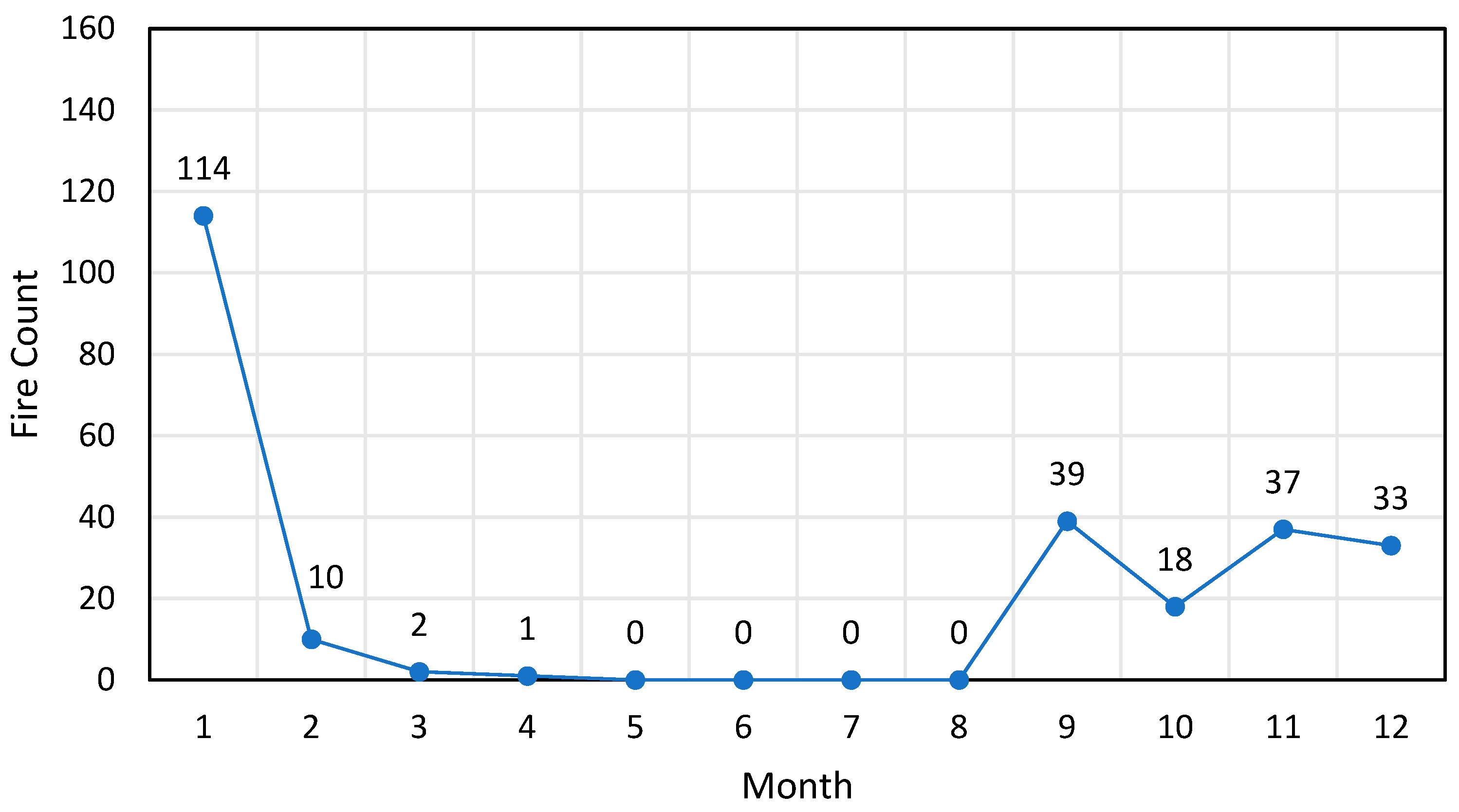 Figure 9. Monthly fire spot statistics map for area 1.