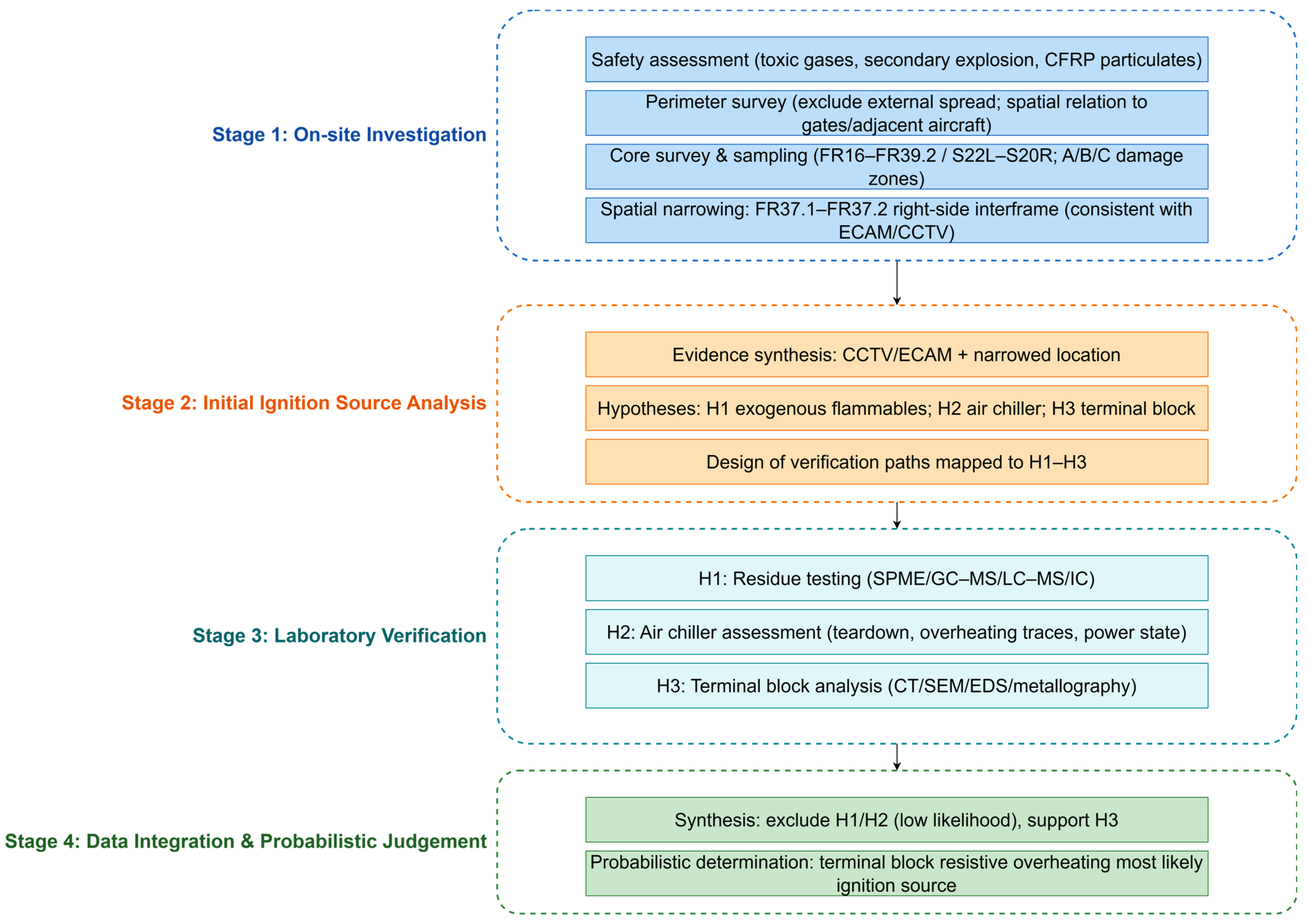 Aircraft fire investigation is increasingly evolving from experience-based approaches toward scientific methods centered on fire dynamics and multi-source evidence. Wang et al. [